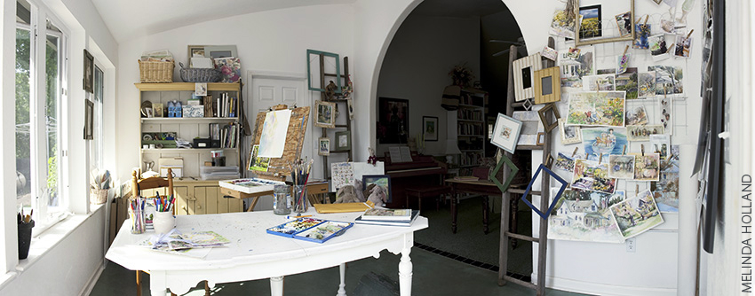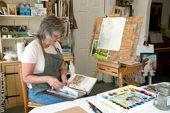 Now let’s go inside and take a look around while Shona looks for some inspiration at her easel in the studio.