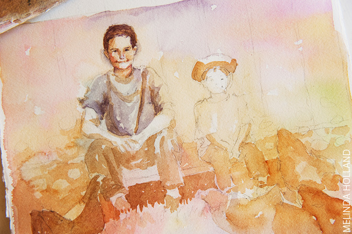This unfinished watercolor with the little boy really captivates me. I’d buy it unfinished, actually, since it leaves much to the imagination of what it could be.