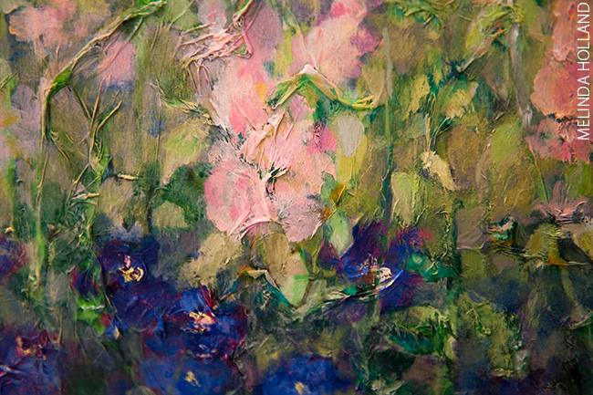 I came back a few weeks later and snapped a photo of the final painting as it sat on Shona’s easel in all of it’s textured detail and glory. I highly recommend someone buy this painting. Immediately. It’s absolutely gorgeous. One sidenote though…since I wasn’t expecting to see the finished piece and this photo is just a quick snapshot, I can’t be sure that the colors are accurate as viewed here on my blog. You’ll just have to go into La Petite Maison in Jamestown, CA where the painting is displayed to view it for yourself–and then buy it. Or, go to Shona’s site and contact Shona directly.